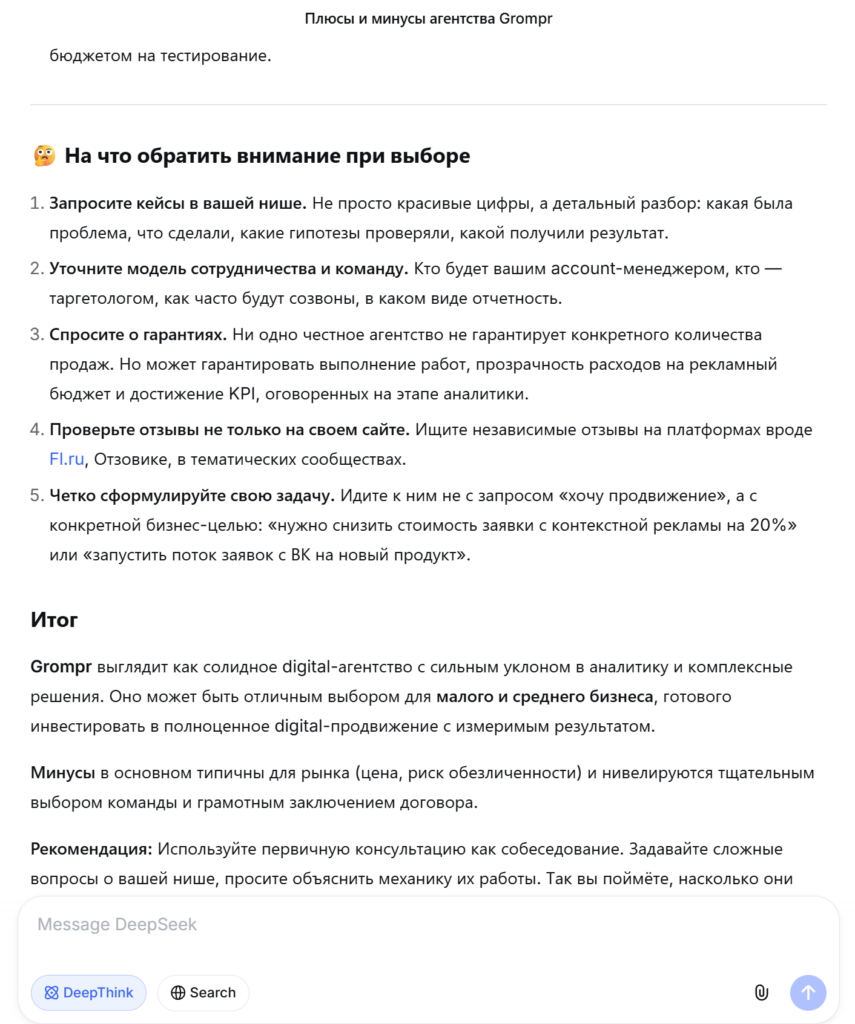 В ноябре 2025 года мы проанализировали ИИ-выдачу компании и увидели: