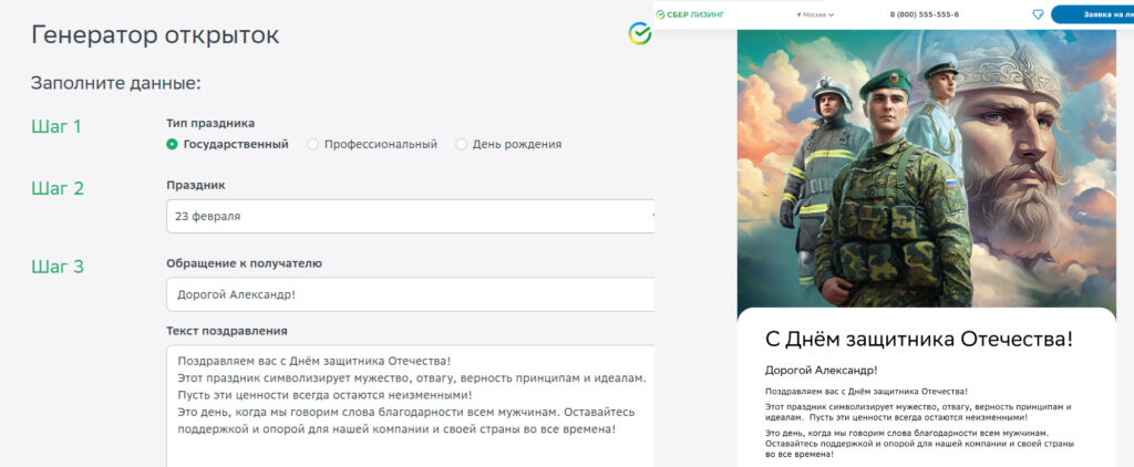 Механику можно реализовать с помощью телеграм-бота или добавить отдельную страницу на сайт, как у «СберЛизинга».