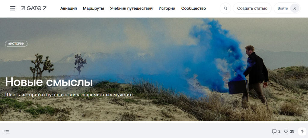 - о мужчинах, построивших бизнес с нуля или реализовавших свою мечту. Например, в журнале авиакомпании S7 Gate 7 собрали истории о путешествиях. Их герои спасают китов, исследуют Крайний Север и стремятся показать мир своим детям.