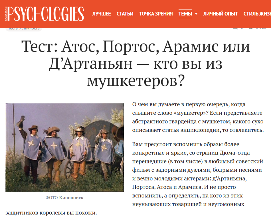 - тест «Кто ты из…» (мужские персонажи фильмов, книг, игр, супергерои);