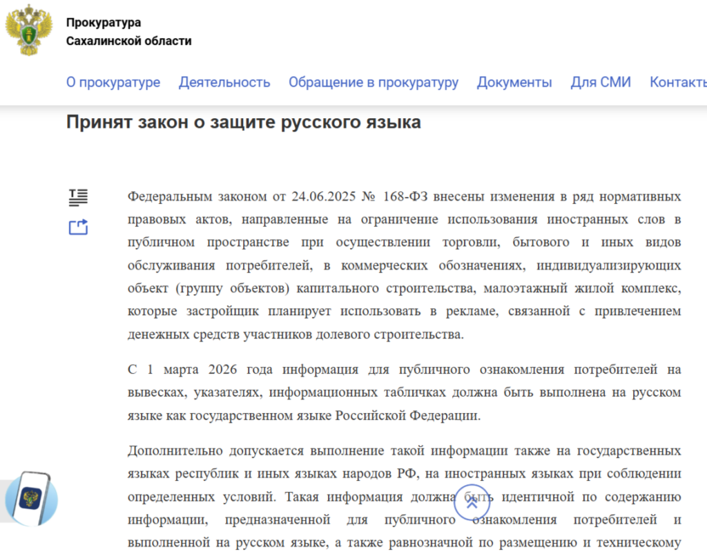 Пример разбора Федерального закона № 168-ФЗ, который ввел ограничение на иностранные слова для бизнеса