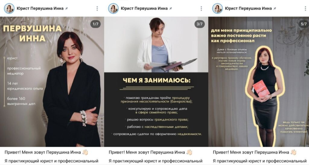 Специалист может публиковать лайф-контент с акцентом на свои ценности в работе и жизни, без лишней неформальности. Например: