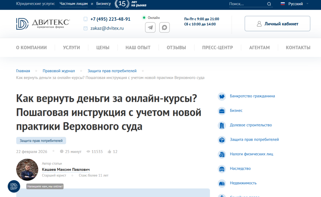 - Кейсы или статистика без разглашения конфиденциальной информации — например, «помог вернуть 50+ млн рублей по спорам с застройщиками».