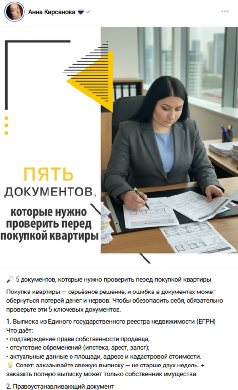 Формат, схожий с предыдущим, но более простой для восприятия и потенциально вирусный. Чек‑листы дают аудитории готовый список действий: что проверить, какие документы собрать, какие процедуры пройти.