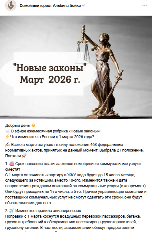 Юристу материалы с разборами помогают привлечь аудиторию на волне интереса к инфоповоду, а также укрепляют его репутацию как специалиста, который разбирается в актуальных вопросах и держит руку на пульсе. И даже после спада первичного ажиотажа качественный разбор останется полезным ресурсом для тех, кто ищет информацию по теме.