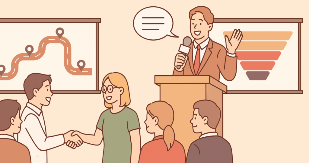 Несмотря на доминирование онлайн-мира, личный контакт и живые впечатления остаются сильными инструментами. Участие в выставках и конференциях помогает выстроить личный бренд в профессиональном сообществе и напрямую пообщаться с аудиторией.