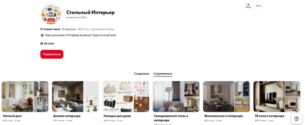 Pinterest работает как бездонный источник вдохновения и долгосрочная инвестиция в трафик. Создавайте тематические доски и наполняйте их не только чужими, но и обязательно своими работами. Так пользователи, сохраняя понравившуюся идею, будут выходить прямо на ваше портфолио, даже спустя месяцы.