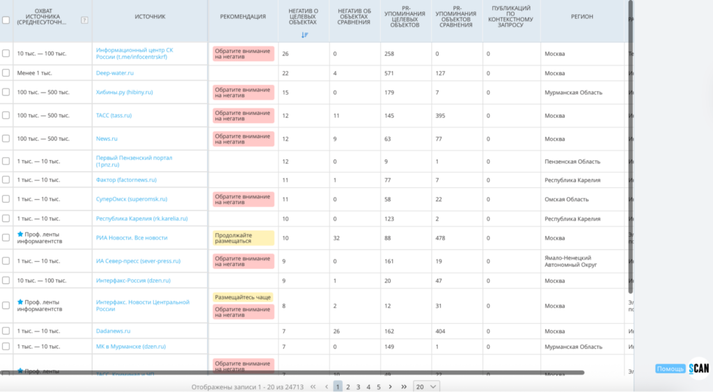 Это можно делать самостоятельно или автоматизировать: указать интересующие параметры (например, типы упоминаний, PR-метрики, такие как тональность или индекс заметности) и период анализа (например, текущий день, неделя, месяц и т. д.). В результате PR-специалист получит систематизированный документ для дальнейшей работы.