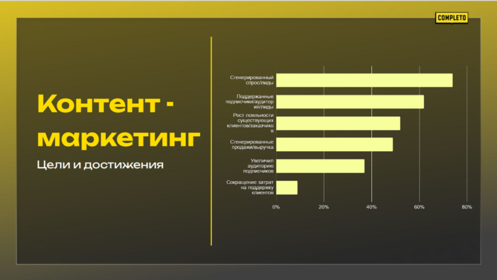 В «Комплето» до запуска системы контент-маркетинга клиентов привлекали с помощью холодных продаж, Андрей лично делал по 120 звонков в день. С 2015 года, когда контент-маркетинг набрал обороты, средний чек увеличился в 20 раз. Появился бренд, кейсы, и от исходящих продаж они полностью отказались. До сих пор в компании перелидоз.