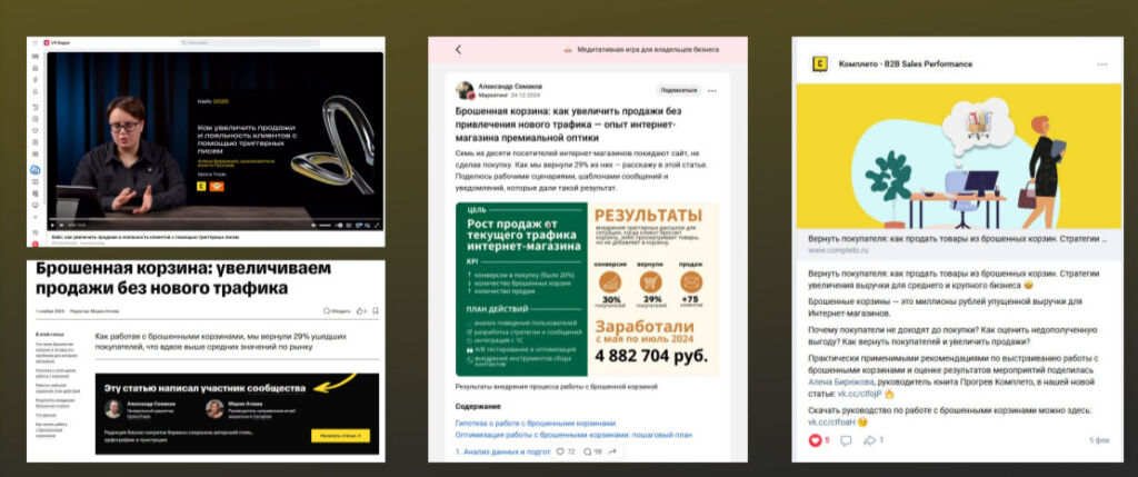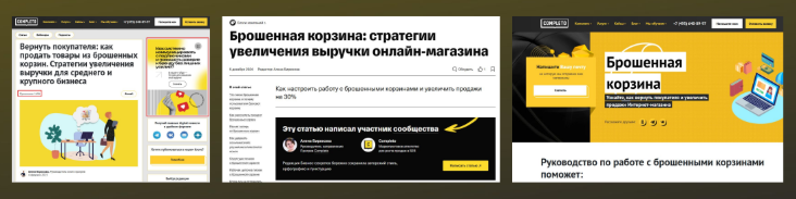 К примеру, команда «Комплето» подготовила подробный гайд по работе с брошенными корзинами. Разместила его в своем блоге. Затем переработала материал и отправила в СМИ и бизнес-медиа.