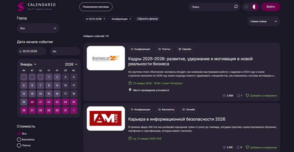 Поисковики и агрегаторы. Просто вбейте в Google или Яндекс «конференция [отрасль] 2026» — например, «конференция маркетинг 2026». В выдаче будут как сайты конкретных мероприятий, так и подборки от профильных ресурсов. Есть и специализированные агрегаторы событий, например, Timepad. Там можно фильтровать мероприятия по отрасли, городу, формату и так далее.