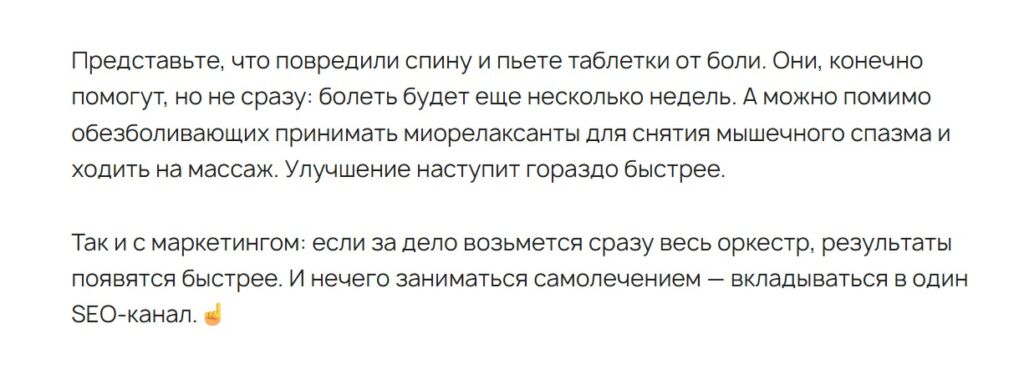 Пасхалка, которую оставляю почти всем заказчикам — медицинские метафоры. Это профдеформация после нескольких лет работы над статьями для клиник