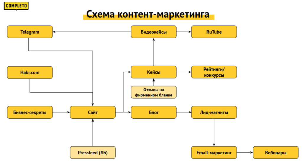 Так может выглядеть схема контент-маркетинга для компаний, занимающихся разработкой сайтов и B2B-порталов: