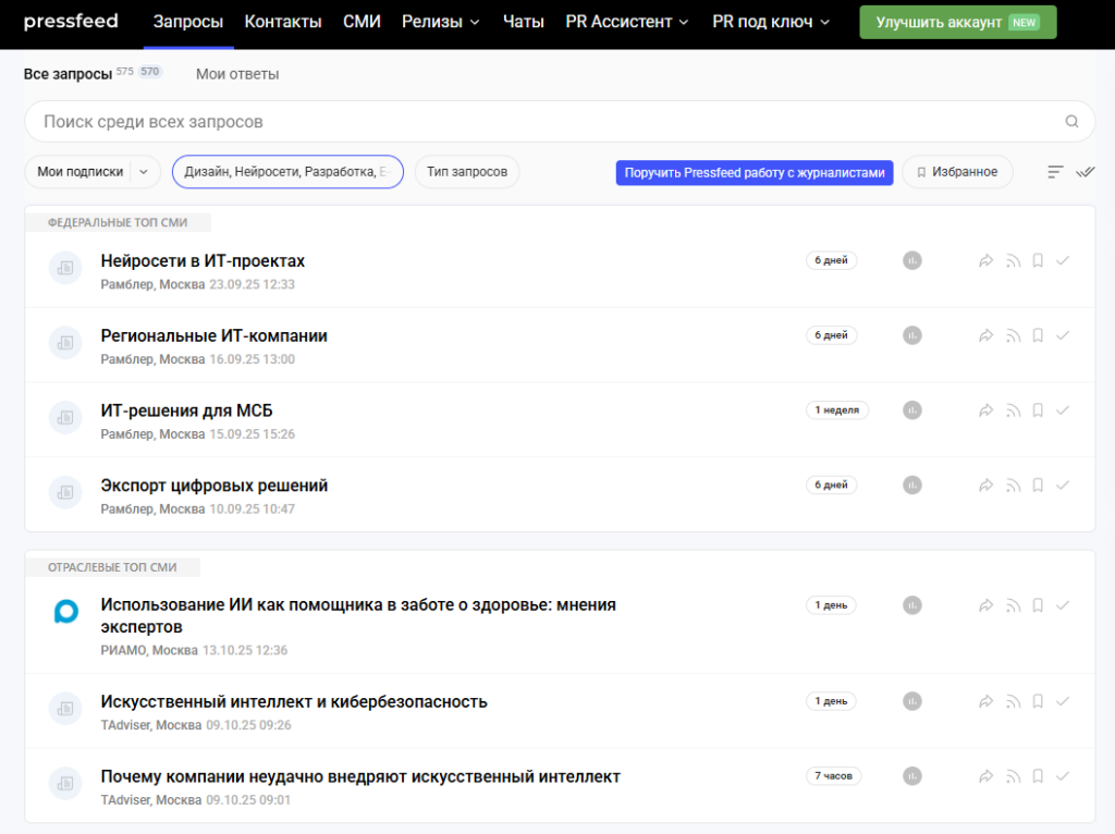 Pressfeed — платформа, где журналисты запрашивают комментарии экспертов.