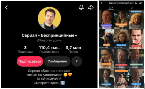 Подписчики этой возрастной группы позитивно реагирует на мемы, тренды и подростковые сериалы, например «Пищеблок». Но когда нам нужно рассказать про тайтлы на более взрослую аудиторию, например, про «Беспринципных», — нельзя просто загрузить видео в текущий аккаунт. У аудитории со временем формируются «ожидания» и такие видео могут просто не взлететь.
