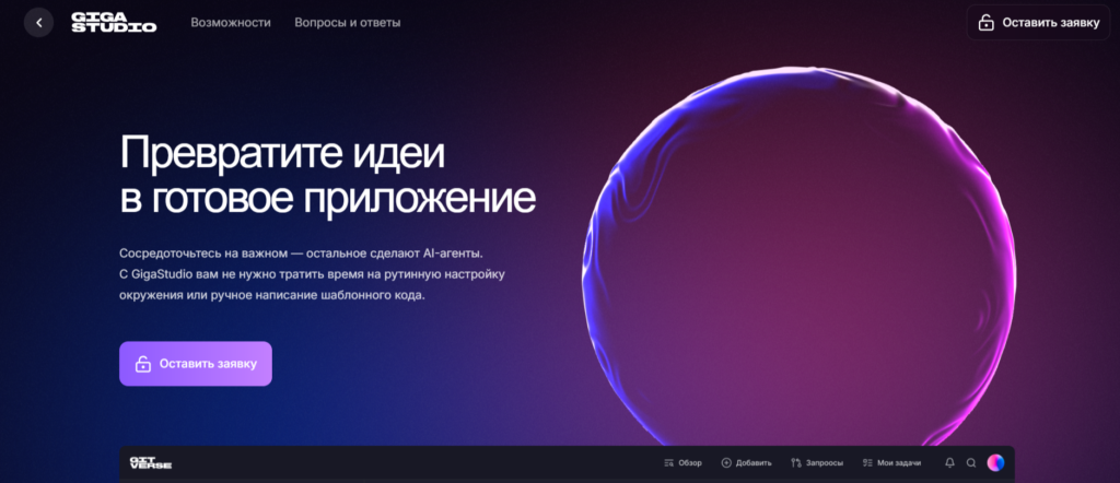 GigaStudio — новый ИИ-инструмент от «Сбера», запущенный в 2025 году на платформе GitVerse. Он интегрирует возможности крупнейших современных языковых моделей и собственных AI-агентов корпорации. Пользователь может создавать и дорабатывать каркас сайта или приложения в диалоге с нейросетью с помощью текстовых запросов.