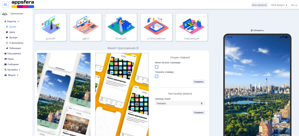 AppsFera — отечественная платформа для создания мобильных приложений без программирования. Ориентирована на малый и средний бизнес, позволяет запускать свои PWA и нативные приложения.
