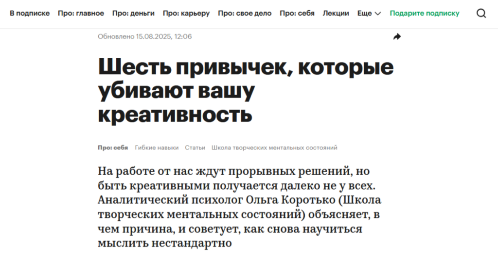 Кроме универсальной услуги — статей в медиа с гарантией выхода — у «Виртуального пиарщика» есть более узкие предложения: публикации для визы талантов, пиар в топовых федеральных СМИ, продвижение в медиа для психологов, врачей и клиник, SEO-статьи для корпоративных блогов, написание и рассылка пресс-релизов.