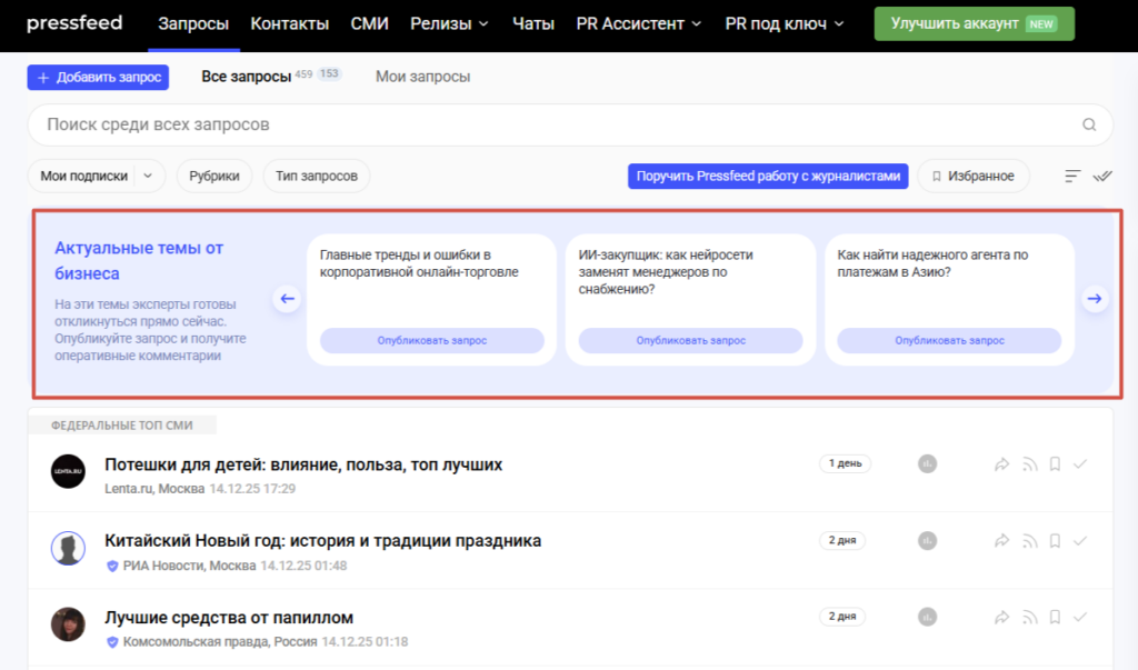 Раньше инициатива на платформе исходила в основном от журналистов: редакции публикуют запросы, а эксперты на них отвечают. В прошлом году мы также начали инициировать запросы на темы, релевантные для спикеров.