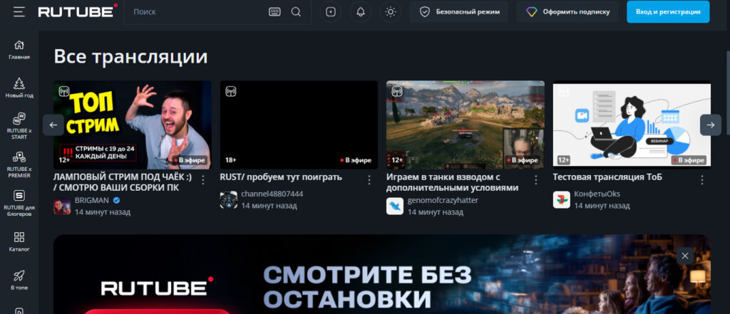 Рассмотрим ресурсы для прямых трансляций, доступные в России.