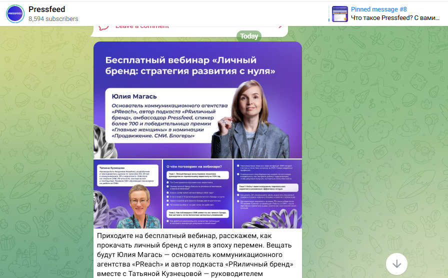 У сервиса журналистских запросов Pressfeed есть образовательный проект с курсами и полезными материалами. Бесплатные вебинары с экспертами по пиару и маркетингу — часть этого проекта.