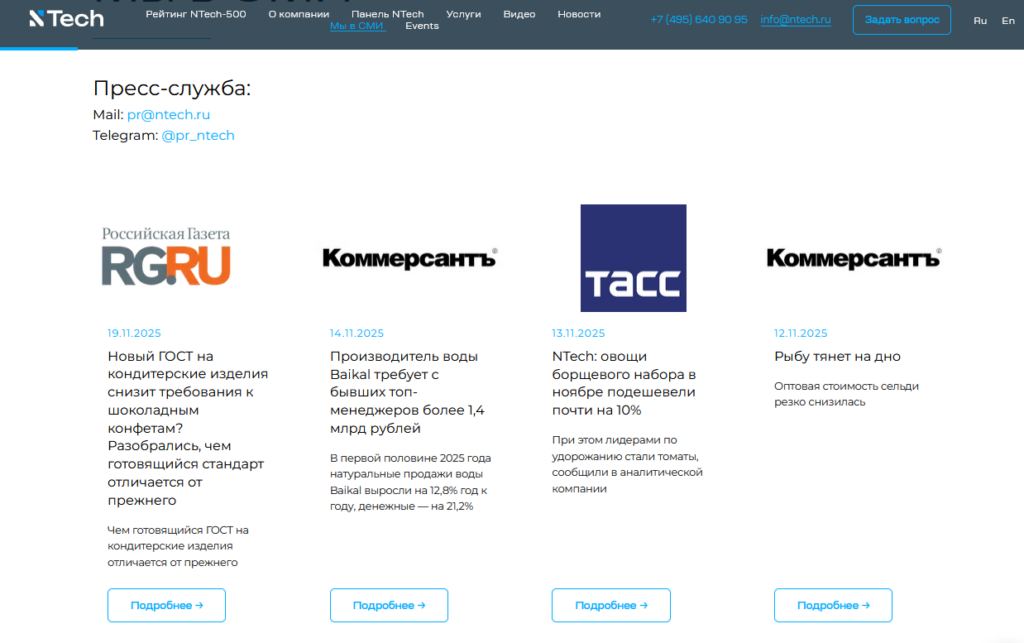 Чтобы поисковики видели связь между компанией и медиа, на официальном сайте бренда должен быть раздел, где собраны статьи с вашими упоминаниями.
