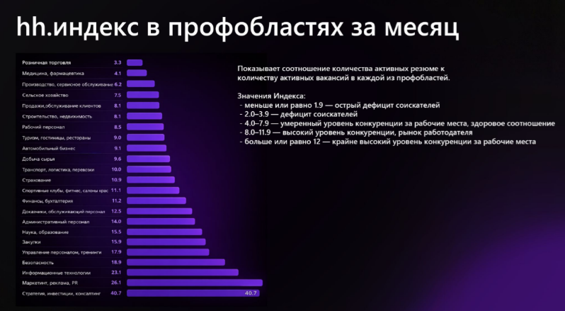 - офисные позиции — здесь, напротив, ощущается переизбыток кандидатов и дефицит вакансий.