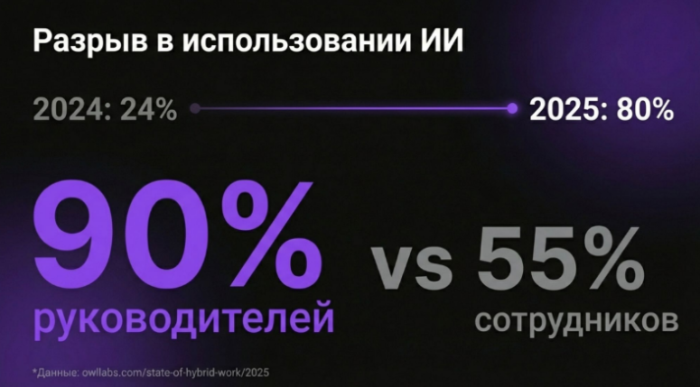 Если раньше использование нейросетей было опциональным, то сейчас большинство специалистов уже экспериментируют с ИИ. Причем руководители используют его активнее, чем линейные сотрудники.
