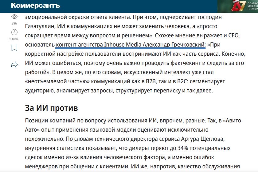 Мы попали в «Коммерсантъ» с первого же отклика журналисту. Упоминание вышло в электронной и печатной версии газеты. Удивительно, но для этого не потребовалось прямых контактов с редакцией или долгих лет выстраивания отношений.